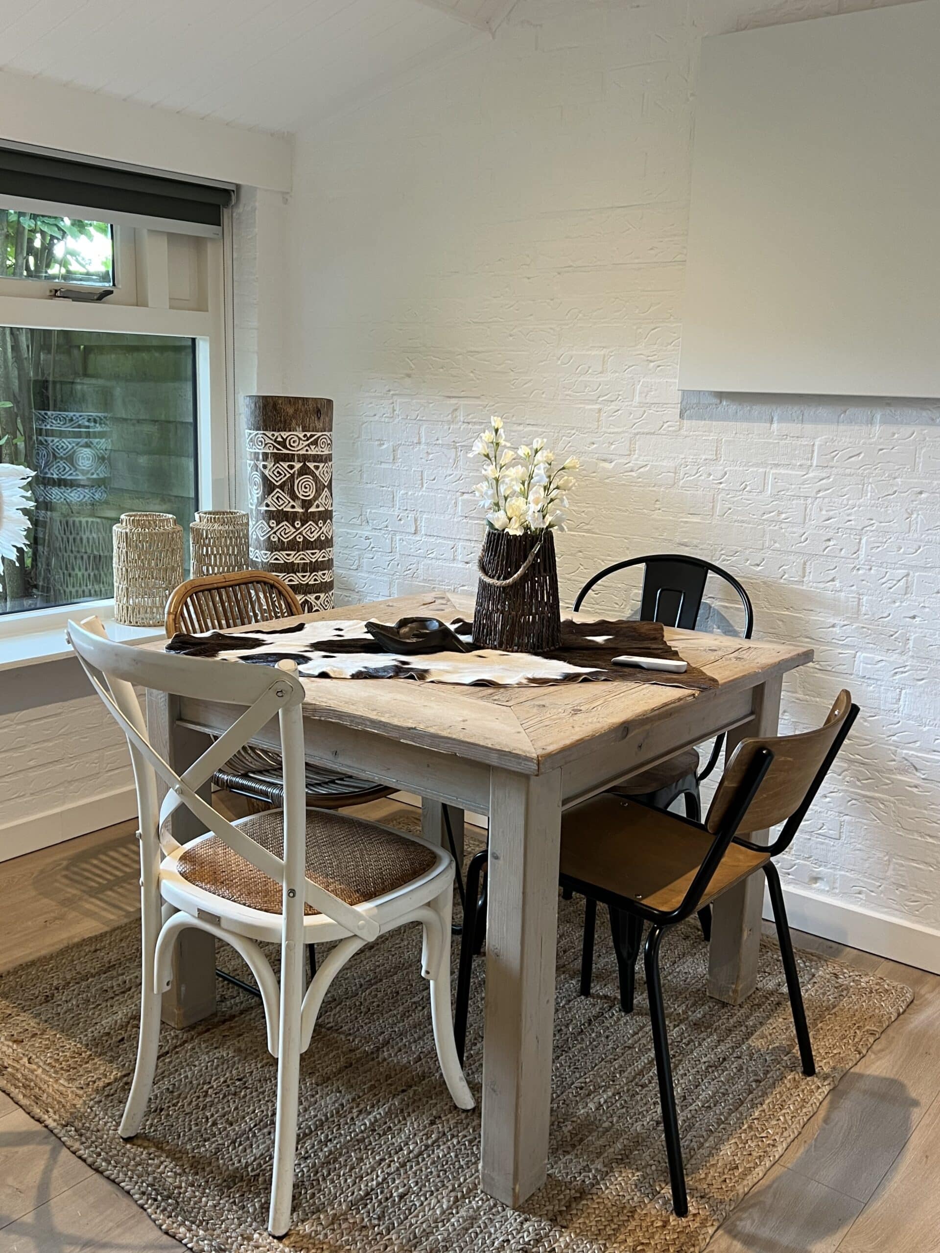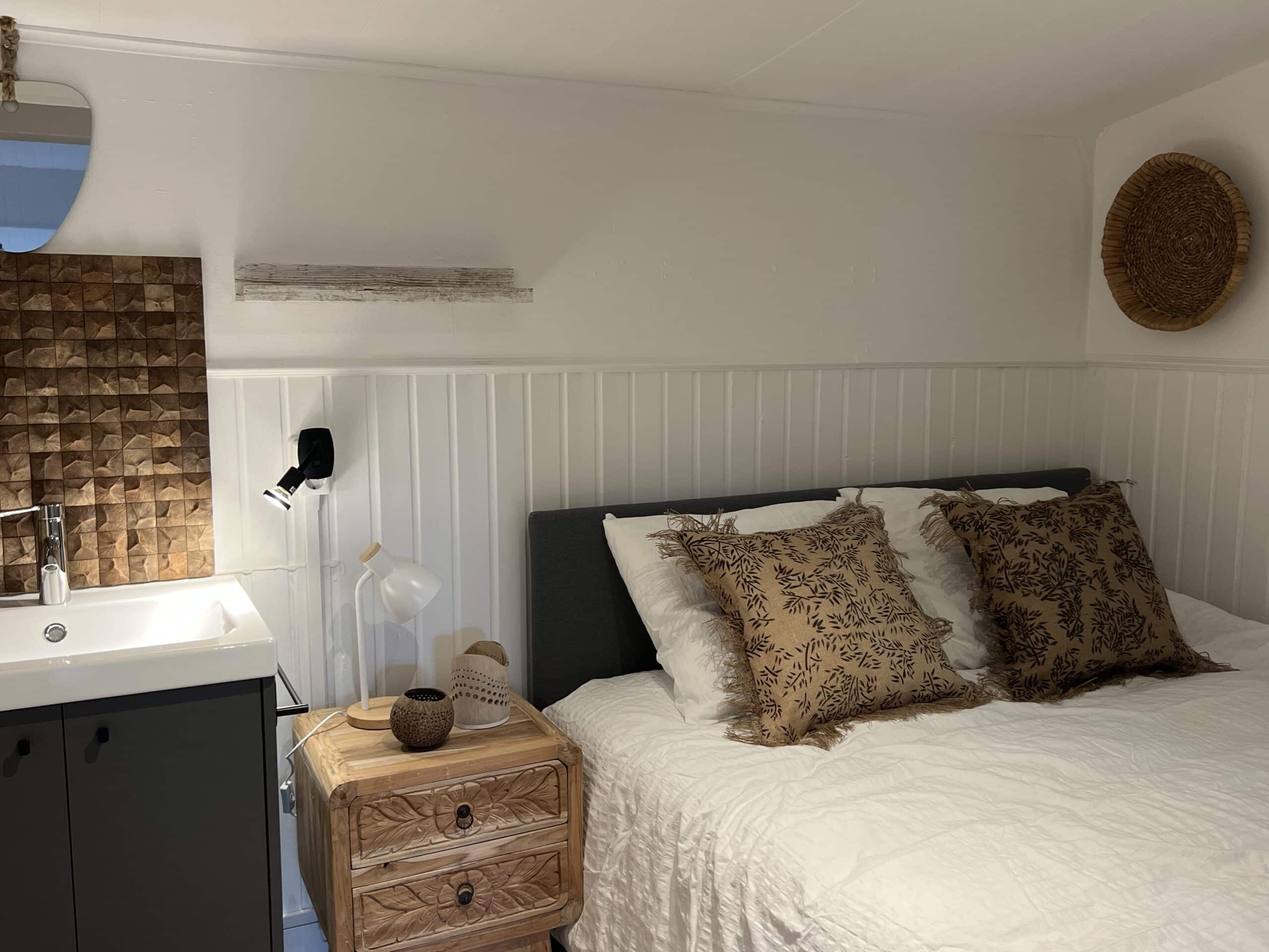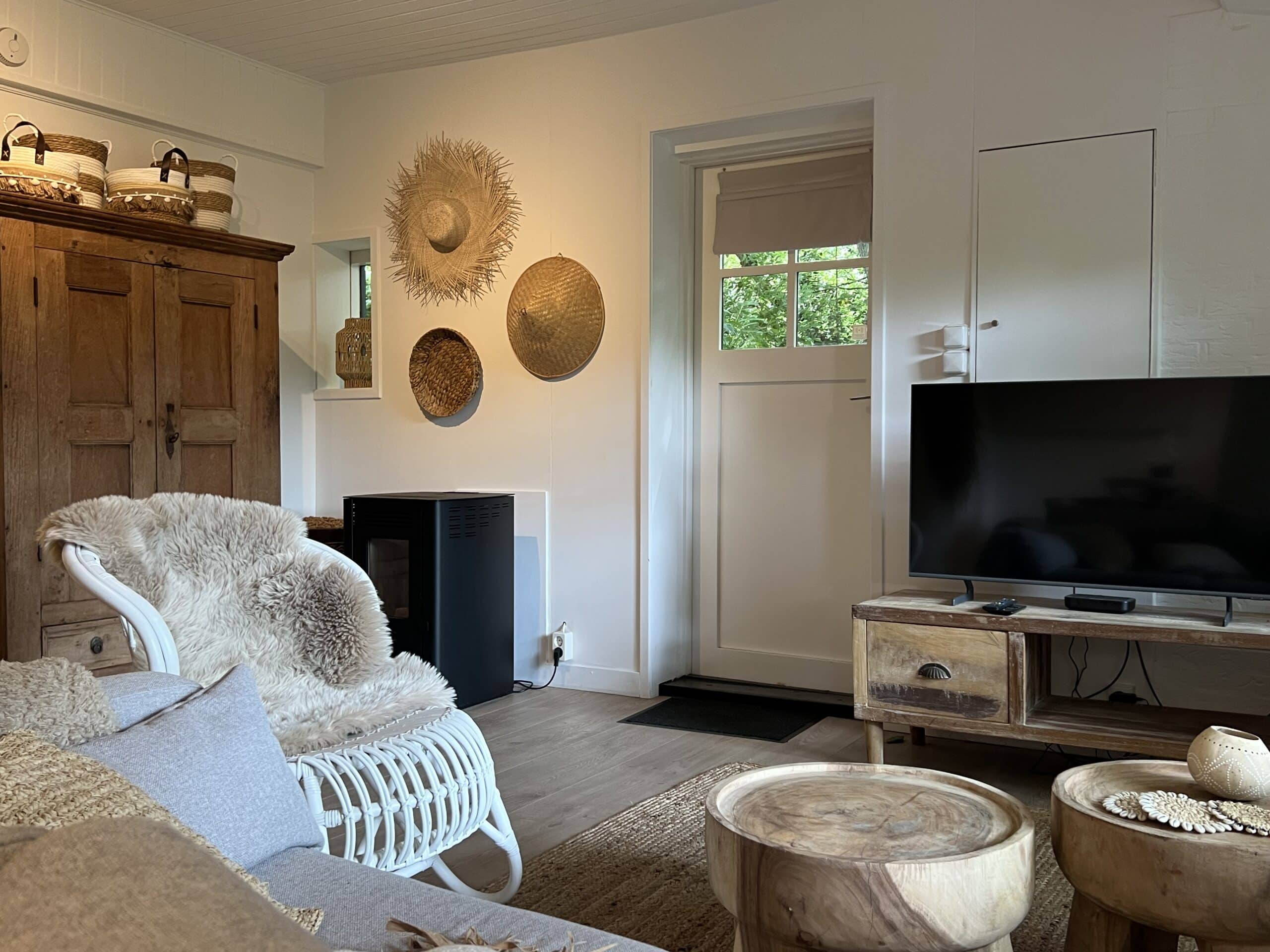 De woning is ca 45m2 groot, geschikt voor maximaal 2 personen, met sfeer gemeubileerd en volledig voorzien (linnengoed etc.) in Ibiza-style, heeft een gezellige woonkamer met een ruime loungebank, eetkamertafel, kast, eenvoudige keuken en wc/doucheruimte en 1 slaapkamer met wastafel en twee-persoons bed. Een ruime kledingkast bevindt zich in een aparte ruimte tezamen met de wasmachine en droger. Daarnaast is er een klein schuurtje en eigen parkeerruimte voor 2 personenauto’s. De woning beschikt over een eigen privé-tuin met zitje. De woning beschikt over een eigen adres met brievenbus. De woning is onlangs volledig opgeknapt in frisse lichte Ibiza-style. De woning is volledig voorzien van alle potten, pannen, linnengoed, servies etc. zodat u meteen kunt instappen en alleen uw kleding hoeft mee te brengen. Een eigen glasvezelinternetaansluiting is beschikbaar.