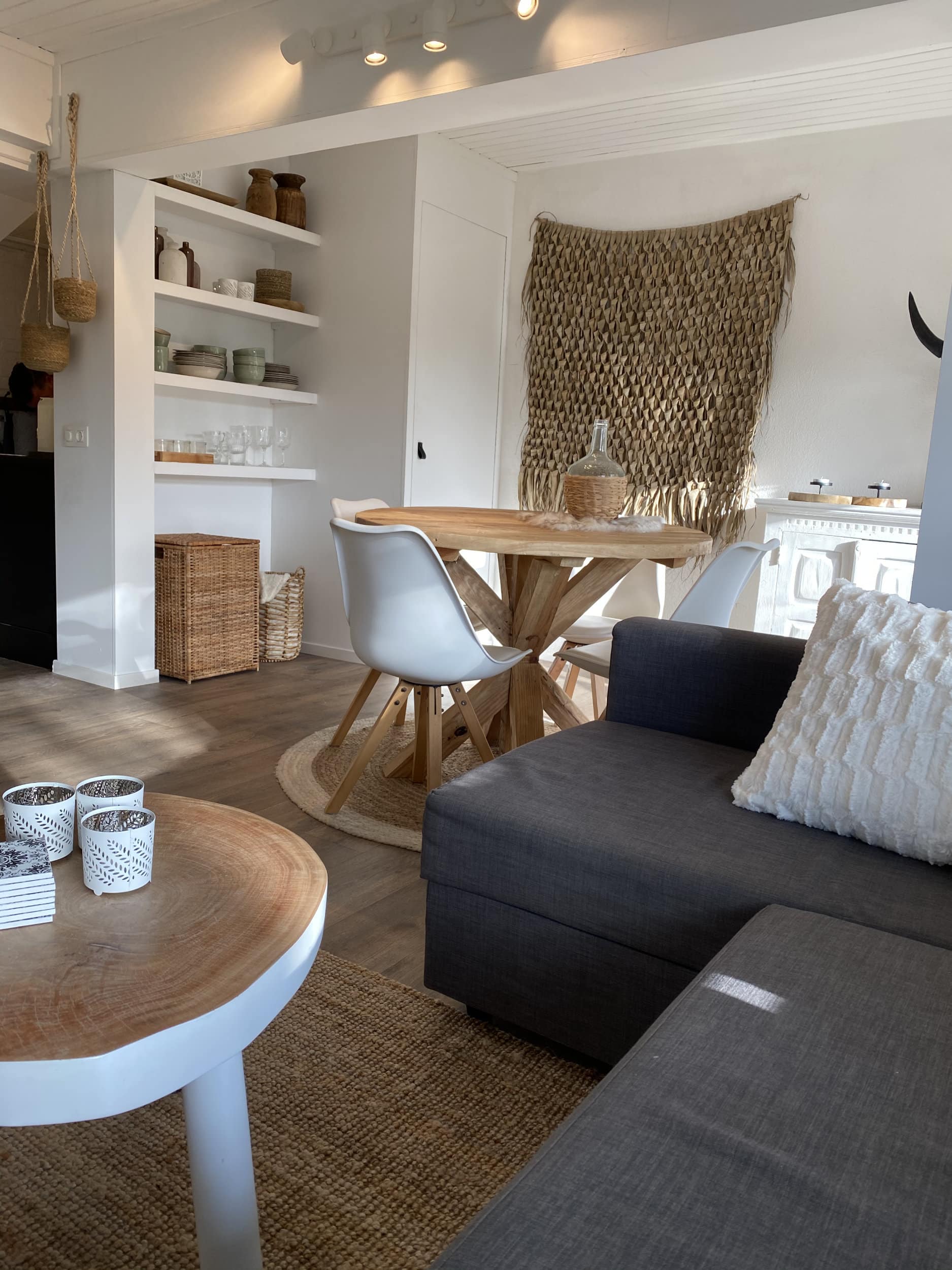 De woning is ca 45m2 groot, geschikt voor maximaal 2 personen, met sfeer gemeubileerd en volledig voorzien (linnengoed etc.) in Ibiza-style, heeft een gezellige woonkamer met een ruime hoek- loungebank, vier-persoons eetkamertafel, boekenkast, eenvoudige keuken en wc/doucheruimte en 1 slaapkamer met twee-persoons bed en grote kledingkast. De hoekbank in de woonkamer kan ook omgebouwd worden tot een extra twee-persoons bed. Daarnaast is er een tuinhuisje, aparte schuur en eigen parkeerruimte voor 2 personenauto’s. De woning beschikt over een eigen privé-tuin met zitje. De woning beschikt over een eigen adres met brievenbus. De woning is onlangs volledig opgeknapt in frisse lichte Ibiza-style. Er is een eigen wasmachine en droger aanwezig in het huisje. De woning is volledig voorzien van alle potten, pannen, linnengoed, servies etc. zodat u meteen kunt instappen en alleen uw kleding hoeft mee te brengen.